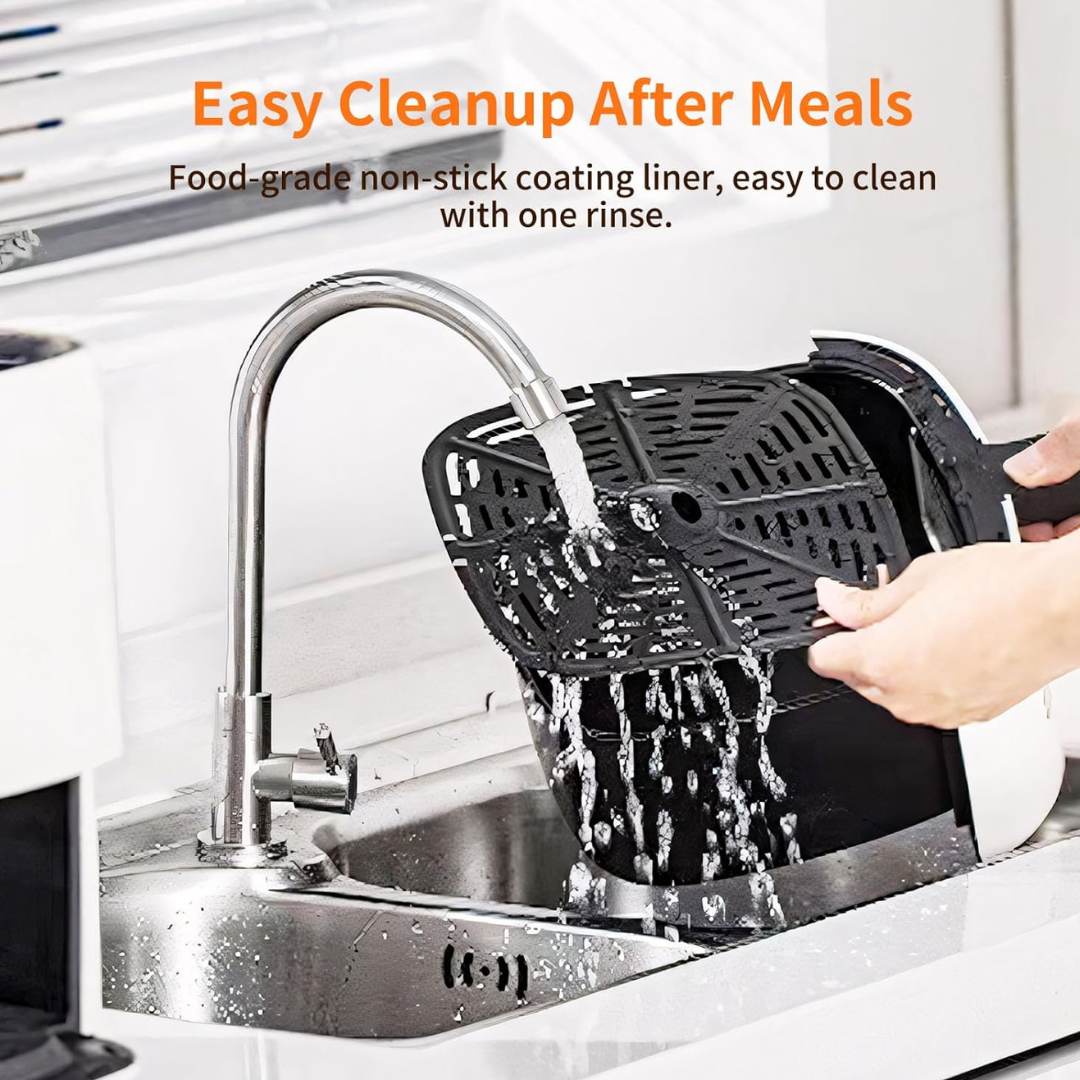 Gotuj bez obaw dzięki wbudowanej ochronie przed przegrzaniem i automatycznemu wyłączaniu po upływie czasu ustawionego na timerze.Nieprzywierające powłoka zmniejszająca zużycie oleju, łatwe do czyszczenia kosze, które można szybko umyć w zmywarce.